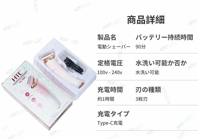 商品詳細 商品名 電動シェーバー 特徴 【水洗いOK】 丸ごと水洗いできるので、お風呂でも使用でき、乾湿両用で使い勝手抜群。使用後のお掃除は簡単に水洗いをしても良し!ブラシで毛を取り除いても良し!お手入れが簡単です。 【USB充電式&携帯便利】 化粧ポーチなどに入るコンパクトサイズで、旅行や出張などでも手軽に持ち運べます。電源のない場所でもコードレスでムダ毛処理ができるので便利です。 【全身ケア】 ボディのムダ毛をきれいかつ安全に処理できる電動シェーバーは、美を意識する女性にとって必要不可欠なアイテムです。 注意 ★産地:Made in CHINA ★商品は簡易包装でお送り致します。 ▼お使いのモニターによっては、実際の色と若干異なって見える場合があります。 ★ 製造時期によりデザインや仕様に若干の変更がある場合がございます。ご了承ください。 ▼実寸は素人採寸ですので、多少の誤差はご了承願います。 ▼この商品は当店実店舗でも販売しております。在庫数の更新は随時行っておりますが、 お買い上げいただいた商品が、品切れになってしまうこともございます。 その場合、お客様には必ず連絡をいたしますが、万が一入荷予定がない場合は、 キャンセルさせていただく場合もございますことをあらかじめご了承ください。