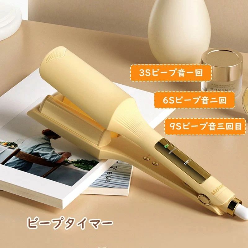 商品詳細 【液晶ディスプレイ】 数字がはっきり見える。 【 15秒で素早く加熱します& 3分でける卵巻きヘアスタイル】 カールヘアアイロンが挟むだけでふわふわウェーブを実現できます。従来型のカールヘアアイロンより操作しやすくなり、優れた技術は必要なし、初心者さんも不器用さんも可愛い波巻きを作れます。忙しい朝でも大活躍!コンパクトで軽いので、仕事後のお色直しにはもちろん、旅行にも持ち運びできます。 【業界革新技術&千万級マイナスイオン&やけど防止】 高純度100%セラミックプレートを採用したヘアアイロン!千万級マイナスインがヘアアイロンから放出し、静電気付き髪の毛を中和したり、髪の毛の水分を保ったり、エレガントで滑らかな髪を実現できます、艶やかなストレートヘアを長時間キープします。 【 4段階温度調節&360度回転コード 】 簡単操作で 初心者 の方にも。150℃/170℃/190℃/210℃の4段階調整できます。軟毛・細毛・ダメージ毛・硬毛・太毛まで幅広く対応できるヘアアイロンです。カール ヘアアイロンを使用いただけるときコードが絡まないように360℃回転コードを設計し、お好きな角度を自由に調整できます。 【安全&サイズ】 30分のインテリジェント電源オフより安全に使用 プレートのカバーは耐熱性に優れたABS材料で作られました。他のヘアアイロン、特にカールヘアアイロンより、角度の変換中に火傷を防止可能!その上、自動電源オフ機能を搭載しましたので、万が一電源を切れ忘れても安心してください 【品質保証&防熱素材】 当ヘアアイロンは独自に開発した技術が施され、高品質のケーシングと防熱素材,髪にツヤを与え、操作がやすく、外観がスタイリッシュで美しい、多くのお客様に愛されて、ぜひお試しください。 ご注意 ※実際の色味と写真の色味は光の当たり方やディスプレイの環境によって、多少異なる場合がございますのでご了承くださいませ。 ※製品品質向上、または製造時期により、予告なくデザイン及び仕様を変更する場合がございます。 ※生産過程におきまして、若干のサイズ誤差、個体差が生じる場合がございます。 ※サイトに掲載されている商品は、撮影の照明、またパソコンなどの環境により、画像と実際の商品の色味が多少異なる場合がございます。