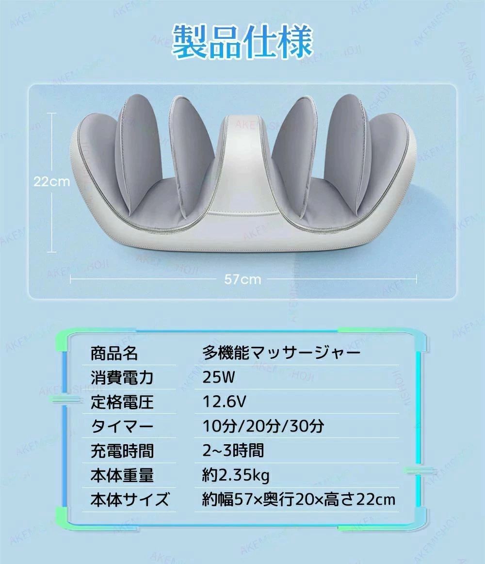 商品詳細 サイズ 本体サイズ(約):57*22*20cm 重量 (約):2.35kg 電源 充電式 電圧 12.6V ???? 15分 自動OFF 特徴 特徴: ◎【3段階調整】3段階調整強さは「弱」?「中」?「強」の3段階。マッサージする箇所の太さに合わせてお好みの強さに調整可能です。 ◎【温感ひざパッドで温めながらマッサージ】おりたためるひざパッドは、ひざマッサージ時には立てて使用し、その他ではたたんで使います。寒い冬場に嬉しい機能です。 ◎【お好みの場所を自由自在にマッサージ】 ひざだけでなく、「ひざ下」?「ふくらはぎ」?「足首」?「足うら」のマッサージにも使用可能です。筋肉の疲れをとり、こりをほぐす効果も期待できます。 注意 ▼産地:Made in CHINA ▼商品は簡易包装でお送り致します。 ▼お使いのモニターによっては、実際の色と若干異なって見える場合があります。 ▼ 製造時期によりデザインや仕様に若干の変更がある場合がございます。ご了承ください。 ▼実寸は素人採寸ですので、多少の誤差はご了承願います。 ▼この商品は当店実店舗でも販売しております。在庫数の更新は随時行っておりますが、 お買い上げいただいた商品が、品切れになってしまうこともございます。 その場合、お客様には必ず連絡をいたしますが、万が一入荷予定がない場合は、 キャンセルさせていただく場合もございますことをあらかじめご了承ください。