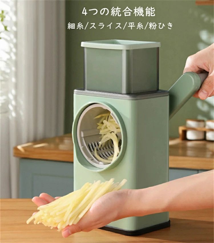 輪切り、粉磨、ダイスカットなどお好きな切り方調整できます。【サイズ(約)】本体:21.5*14.7*28.3cm刀を桶:9.85*11.4cm【重量(約)】0.93kg【材質】ABS+PET+PP+304+420J2+430【色】みどりご留意点※ご利用のモニターによって実際と異なる色に表示される場合がございます。※製造時期によってデザインや仕様に若干の変更がある場合がございます。予めご了承ください。※輸入品の為、小キズ・スレ・箱つぶれ等発生する場合がございます。ご使用に問題がない場合、ご対応できかねる場合がございます。ご理解ご了承の上ご注文をお願いいたします。
