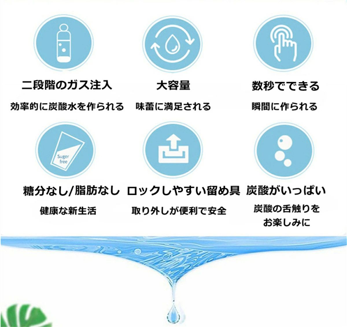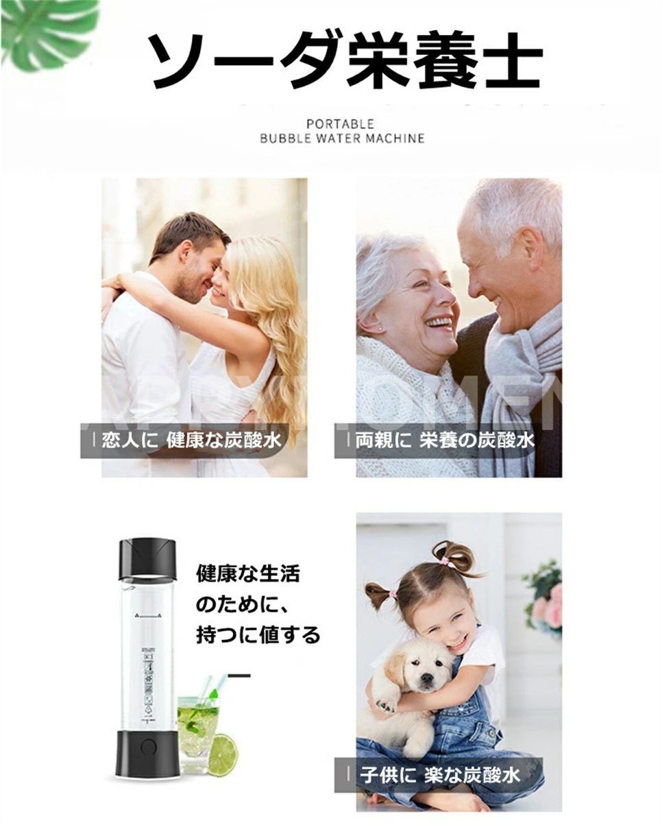 ソーダメーカー 炭酸水メーカー スターターキット ソーダ水ボトル ソーダスパークル ソーダメーカー ソーダマシン ソーダ機 炭酸水 ガスカートリッジ 炭酸飲料 ジュース ソーダ水 カクテル 使用簡単 家庭用 持ち運び便利 ご注意:本商品はガスカートリッジが付属しておりません。 専用のガスカートリッジを使用してください。 お勧めのガスカートリッジのサイズ: 幅1.8×奥行き1.8×高さ6.6cm 重量:8g/本【炭酸水をすぐに作られる】 いつでもどこでもソーダ飲料をお楽しみください。飲料メーカーと数秒でスパークリングドリンクを自由に準備できます。普段の水をわずか数秒で炭酸水にできる炭酸水メーカー。 炭酸の強さは自由自在、強炭酸水から弱炭酸水まで設定できます。【環境に優しい素材】食品グレードプラスチックを採用し、安全に使用でき、ポータブル炭酸水マシンは持ち運びまたはバッグに入れるのに十分な大きさで、シンプルで便利で安全で、いつでもどこでも楽しめます。【広範な使用範囲】このソーダメーカーボトルはコンパクトでポータブルです、家で使用はもちろん、外出や出張や旅行にも最適です。【30日品質保証】ご購入日より1ヵ月以内、品質に問題があれば、当店が責任をもって交換対応をさせて頂きます。ご不明点がございましたら、遠慮なくご連絡を頂きますようにお願い致します。 2