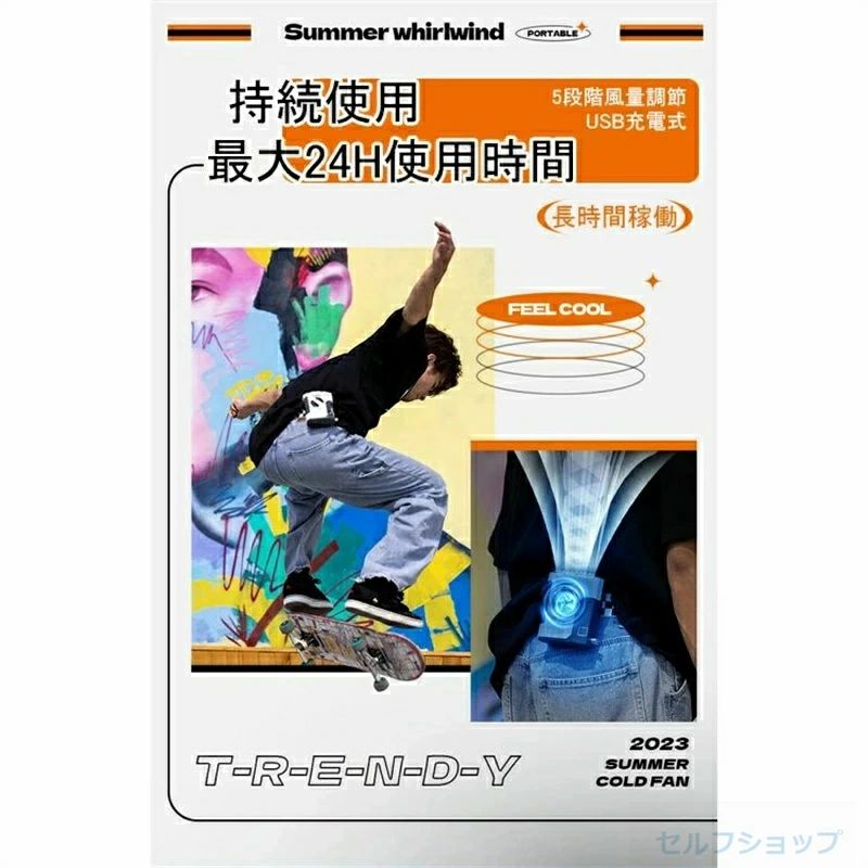 【カラー】 ホワイト ブルー オレンジ商品名 腰掛け扇風機サイズ説明 93*113*59mm重さ 297g製品材質: ABS、PC、アルミニウム合金●扇風機10000mAh大容量のリチウムバッテリーが内蔵し、1段階モードで約24時間の連続使用ができ、強風モードでも約12時間の連続使用ができます。腰掛け扇風機の作動に給電するだけではなく、モバイルバッテリーとしても使えるし、携帯電話や他のデジタル設備に充電でき、外出の端末充電に大活躍します。●ベルトファンは軽風から強風まで5段階で風量を自由に調節できます。運転ボタンはシンプルなワンボタン設計で更に操作便利。そして風量モードを切り替えることにより無駄な電力消費が抑えられます。●最大風速は7.5m/sの強気流で、快適な強風体験をもたらし、蒸し暑さを一気に吹飛ばします。●腰掛け扇風機の魅力は、両手をふさがずに暑さ対策ができます。メーカー希望小売価格はメーカーカタログに基づいて掲載しています