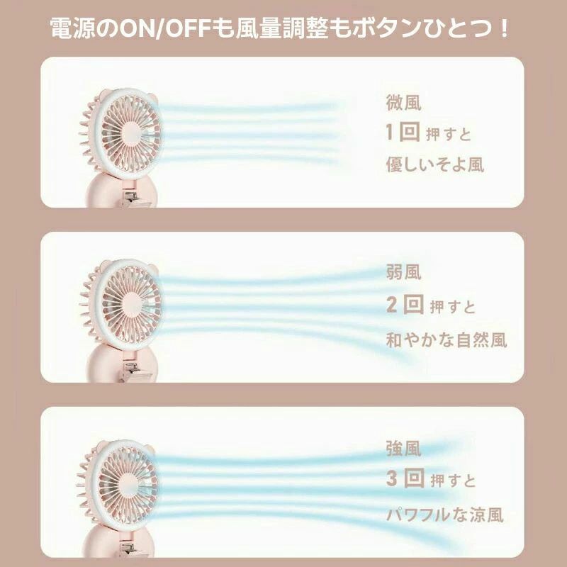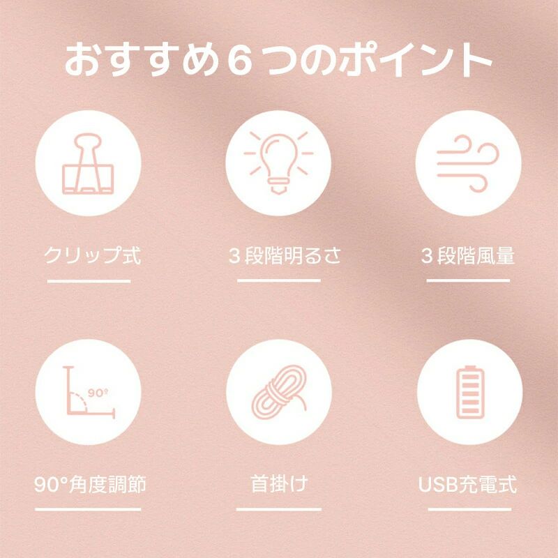 商品紹介 クリップ式・卓上式・手持ち式3WAY扇風機 【商品仕様】 サイズ:79×126.5×43mm 重量:約110g 羽根枚数:7枚 入力:5V/1A バッテリー容量:800mAh 充電時間:約2.5時間 連続使用時間:約3.5~5.5時間 【注意事項】 ※実際の色味と写真の色味は光の当たり方やディスプレイの環境によって、多少異なる場合がございますのでご了承くださいませ。 ※製品品質向上、または製造時期により、予告なくデザイン及び仕様を変更する場合がございます。 ※生産過程におきまして、若干のサイズ誤差、個体差が生じる場合がございます。 ※サイトに掲載されている商品は、撮影の照明、またパソコンなどの環境により、画像と実際の商品の色味が多少異なる場合がございます。fan6ev_fan6