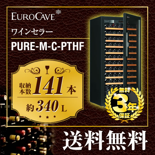 [Pure-M-C-PTHF]ユーロカーブ ワインセラー PURE ピュア 収容本数:141本 扉タイプ:フルガラス EUROCAVE 容量:340L 黒色 【送料無料】【メーカー直送のため代引不可】