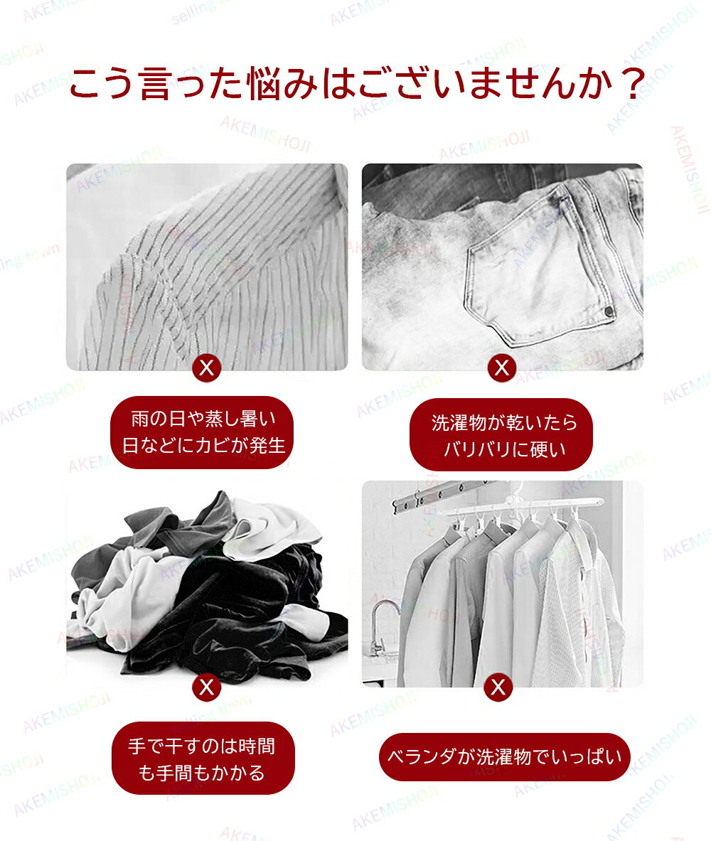商品詳細 材質 ABS+ステンレス サイズ W50*D42*H59.5cm 重量 (約):15.5kg 容量 4kg 電源コード長さ 約1.4m 定格電圧 110V 防水性 IPX4 特徴 特徴: 見やすいディスプレイに、操作簡単なノブ式電源ボタン。使用シーンに合わせて使える6つのモードを搭載。 ◎おまかせで自動乾燥 乾燥開始から完了までの時間を自動で計算します。 ◎熱に弱い衣類を乾燥させたい風乾燥 内容量に関係なく約10分間ヒーターを使わず冷風運転します。ブラウス、水着、タイツなど熱に弱いものに適しています。 ◎アイロンがけを上手にしたい弱乾燥 アイロンがけに適したコースです。ワイシャツなどアイロンがけに適した湿り気のある状態で終了します。 ◎しっかり乾かしたい強乾燥 内容量に関係なく約110分間乾燥させます。しっかりと乾かしたいときにおすすめです。 ◎冬服や厚地の服におすすめの厚物乾燥 内容量に関係なく約170分間乾燥させます。冬服など乾きにくい厚地の服やサイズの大きい衣類に適しています。 ◎便利なタイマー予約機能 運転を開始させる時間にタイマーを合わせます。乾燥は「自動」コースで行います。 注意 ▼産地:Made in CHINA ▼商品は簡易包装でお送り致します。 ★稼働前、プラグがコンセントにしっかりと挿入されたことをご確認ください。 ★過負荷による製品損壊を避けるように同じコンセントで多数の家電製品を使用しないでください。 ▼お使いのモニターによっては、実際の色と若干異なって見える場合があります。 ▼ 製造時期によりデザインや仕様に若干の変更がある場合がございます。ご了承ください。 ▼実寸は素人採寸ですので、多少の誤差はご了承願います。 ▼この商品は当店実店舗でも販売しております。在庫数の更新は随時行っておりますが、 お買い上げいただいた商品が、品切れになってしまうこともございます。 その場合、お客様には必ず連絡をいたしますが、万が一入荷予定がない場合は、 キャンセルさせていただく場合もございますことをあらかじめご了承ください。
