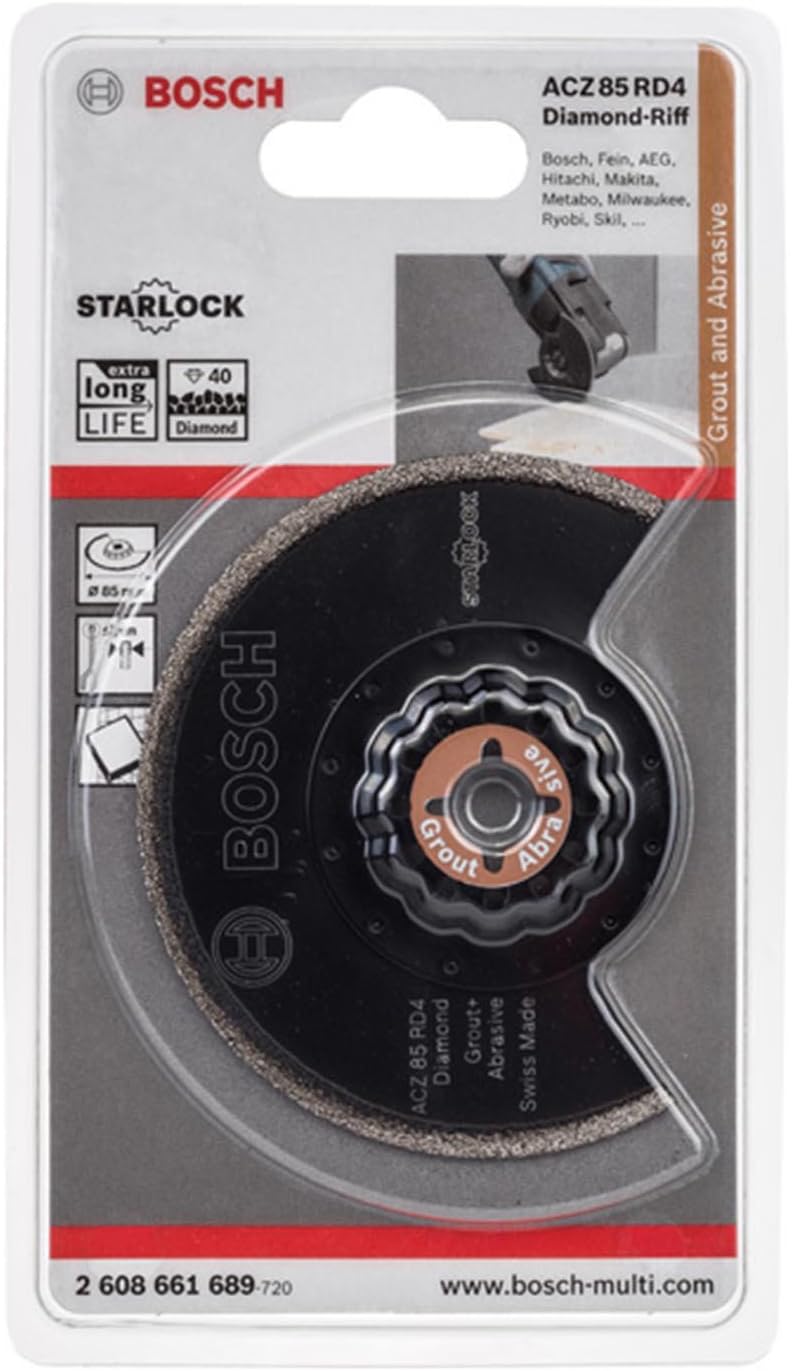 特長 最新のマルチツールアクセサリーです。 ワンタッチ取付け、電動工具本体のパワーを確実に伝達する3D形状採用しました。 豊富なアクセサリーであらゆる作業に対応し、他社機種にも使用可能です。 ボッシュ、マキタ、ハイコーキOISマルチツール、ボッシュスターロックシステム全機種使用可能です。 用途 陶器タイル、目地切断、ALC筋つけ切断 商品スペック マルチツール用アクセサリー:スターロック 刃幅85mm 粒度:#40