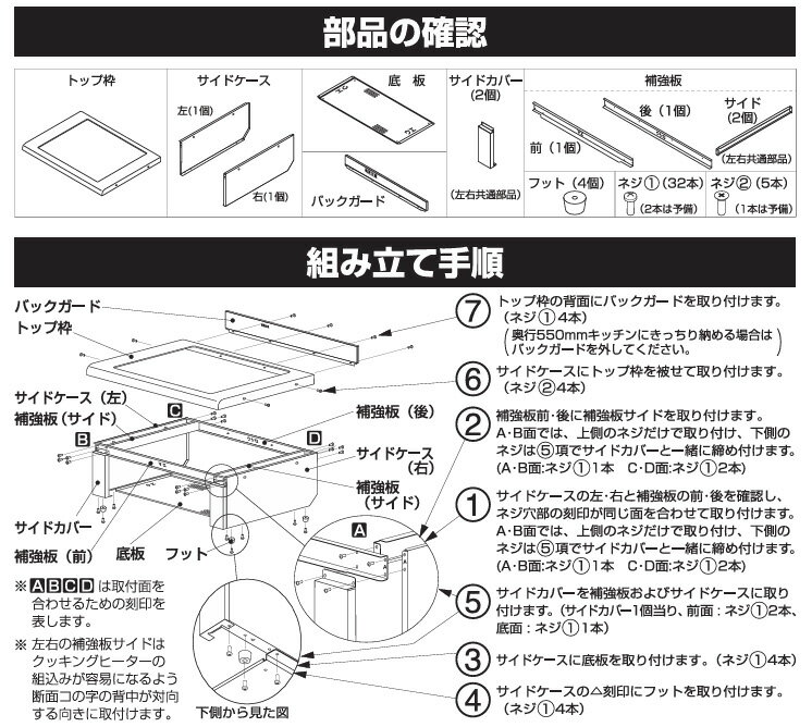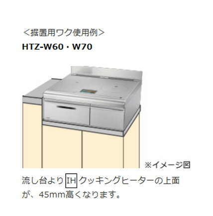 据置用ワク (組み立て式)HTZ-W70ビルトインタイプ用据置用ワク据置タイプとして、既設のキッチンに手軽にセットできます。トッププレート幅75cmに対応外形寸法:幅749×奥行556×高さ225mm(バックガードの高さを含む295mm)流し台よりIHクッキングヒーターの上面が、45mm高くなります。●商品詳細はメーカーホームページ、カタログにてご確認ください。