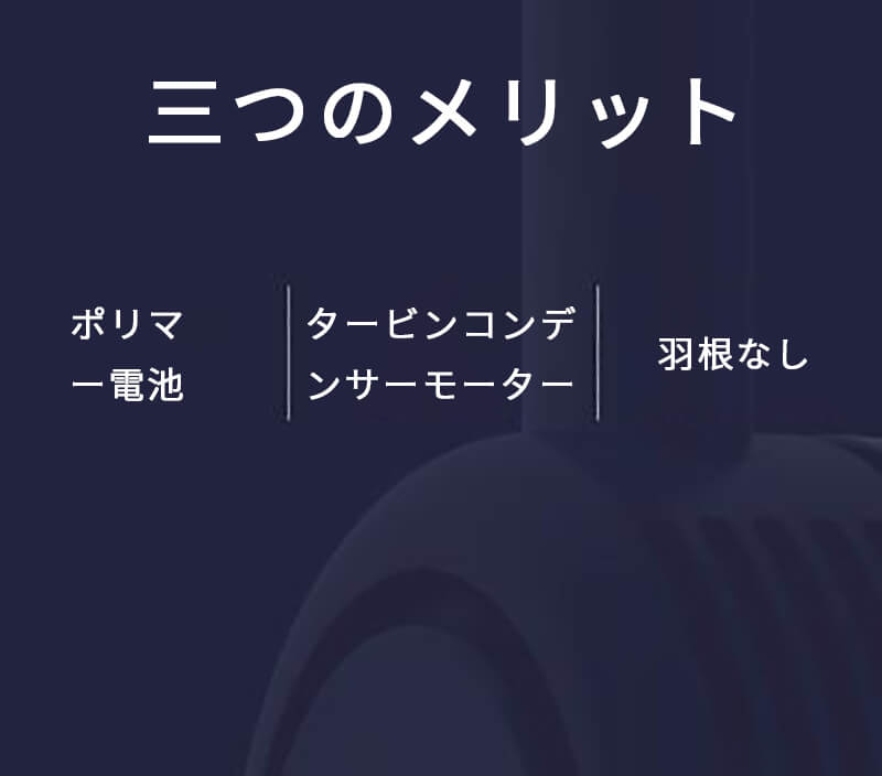 三つのメリット ポリマー電池 タービンコンデンサーモーター 羽根なし 産地:中国