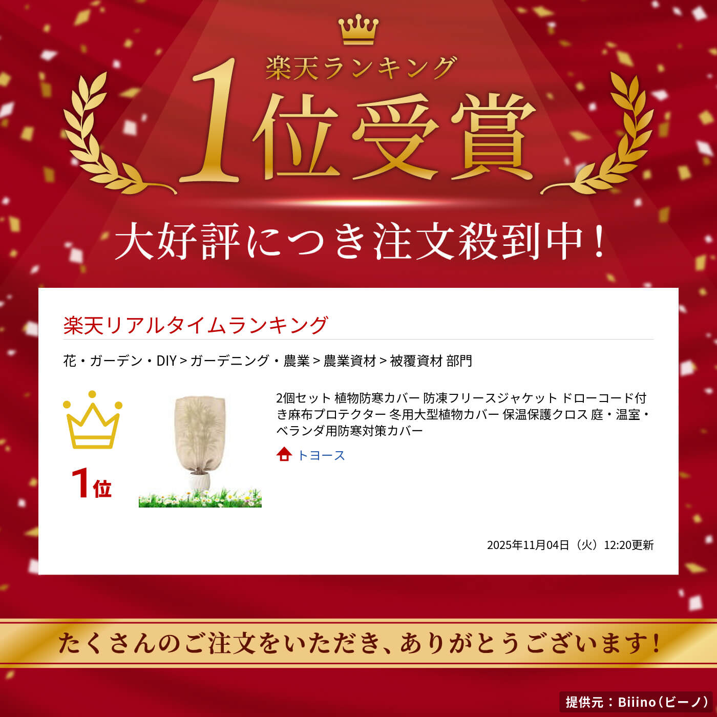 \楽天1位/2個セット 植物防寒カバー 防凍フリースジャケット ドローコード付き麻布プロテクター 冬用大型植物カバー 保温保護クロス 庭・温室・ベランダ用防寒対策カバー