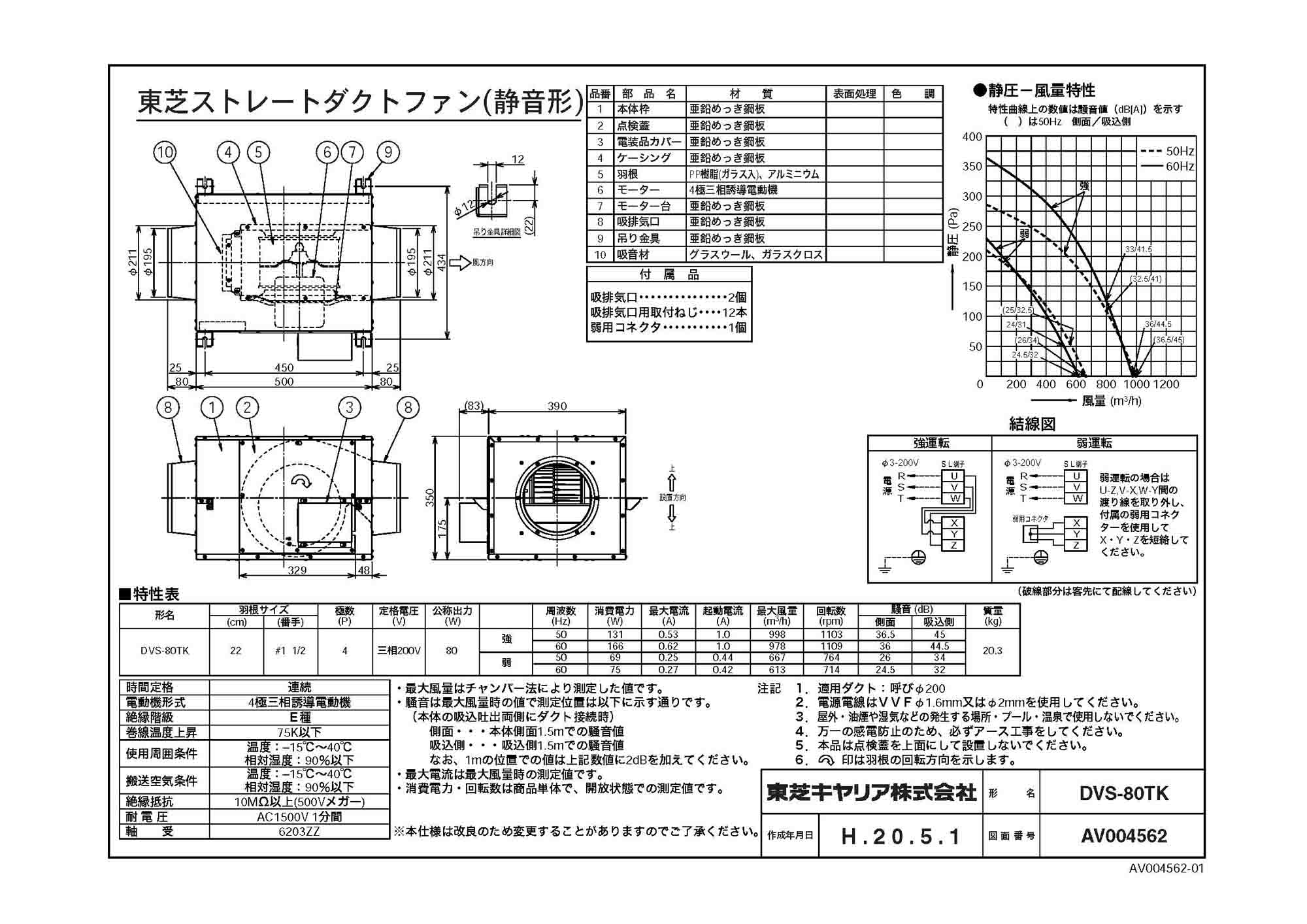 羽根サイズ:220mm適用パイプ・ダクト寸法:φ200mm三相200V※動力用電源です。電源をご確認下さい。天地逆取付可能強-弱速調可能SL端子、天吊金具付※適用スイッチ別売※換気扇の工事は現在承っておりません。ご了承下さい。検索用カテゴリ281商品画像仕様表仕様図