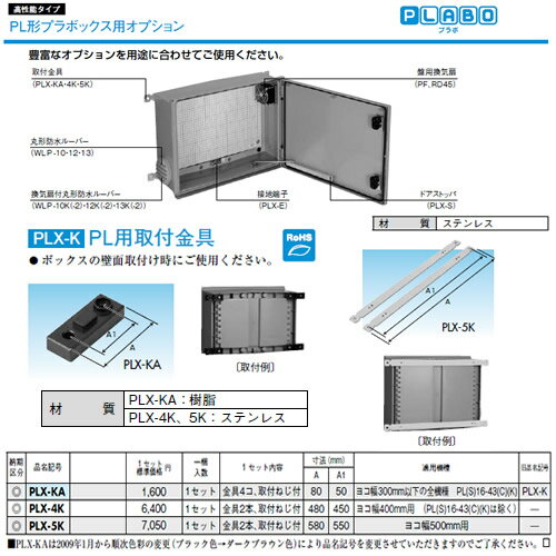 日東工業 プラボックス 高性能タイプPL形プラボックス用オプションPL用取付金具 PLX-5K 家電 > 住宅設備家電 > 住宅設備家電用アクセサリー・部品 > その他住宅設備家電用アクセサリー ショップ名 レビュー数 タカラShop 楽天市場店 0件 【照明器具やエアコンの設置工事も承ります 電設資材の激安総合ショップ】 7,072円(税込) ツイート ●1セット内容:金具2本、取付ねじ付ヨコ幅500mm用※電設資材につきましては、一個単位での販売ができない商品もございます。※画像は代表型番のものです。実際の商品の仕様とは異なる場合があります。【オプション】検索用カテゴリ694 ■カテゴリ 家電 > 住宅設備家電 > 住宅設備家電用アクセサリー・部品 > その他住宅設備家電用アクセサリー