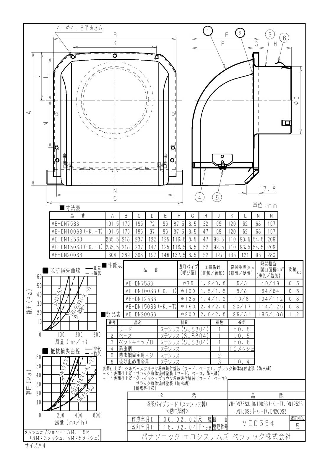 耐塩害スクエアデザイン材質:ステンレス表面仕上げ:粉体焼付塗装色:グレイッシュブラウンサイドアップ水切板付雨水浸入低減仕様壁面汚れ低減仕様防虫網付機種は目づまりする場合がありますので、点検・清掃ができる場所に設置して下さい。油煙を排気する台所等では、目づまりする場合がありますので設置を避けてください。呼び径:φ100mm圧損抵抗係数:排気1.5、給気1.5直管相当長:排気8m、給気8m隙間相当開口面積:排気64平方cm、給気64平方cm質量:0.5kg検索用カテゴリ276