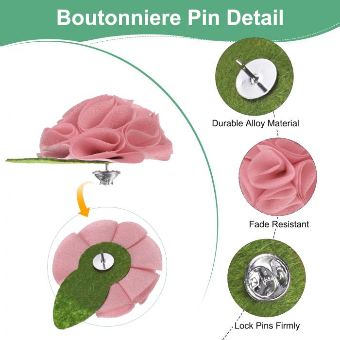 M METERXITY 男性用ラ ペルピン 24個パック 2.56" ハンドメイドフラワーブローチボタンピン メンズスーツ用 紳士/結婚式/新郎/タキシード/コサージュ/アクセサリー用フォーマルブートニア [ダークピンク]