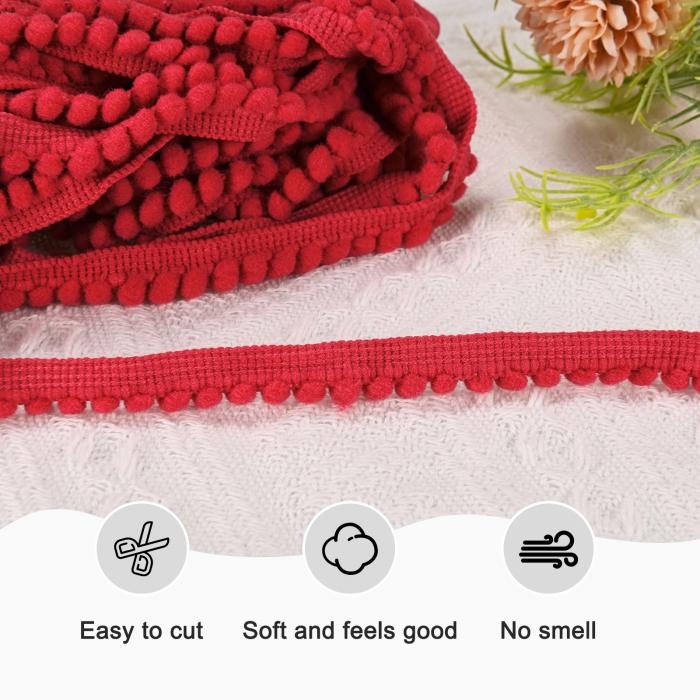 M METERXITY 1パック ポンポンボールフリンジトリム 10ヤード5mmボールフリンジトリムリボン ホームデコレーション/ DIYクラフト/カーテン/枕用 縫製アクセサリー[明るいレッド]