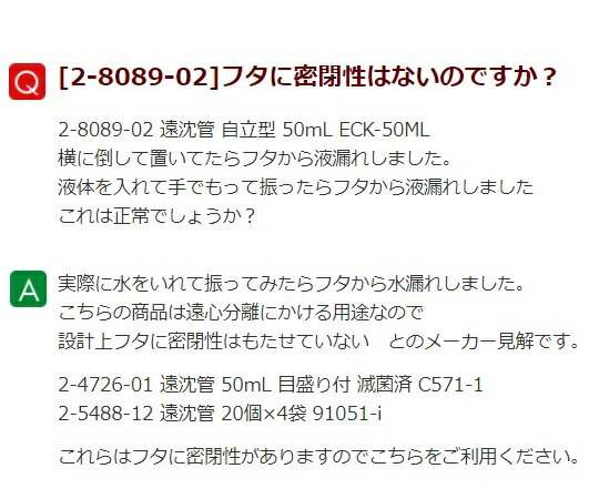 仕様 型番:ECK-50ML 材質:PP(ポリプロピレン) 遠心強度:8000G γ線滅菌済 入数:20本/袋×5袋 容量:50mL タイプ:自立型仕様 型番:ECK-50ML 材質:PP(ポリプロピレン) 遠心強度:8000G γ線滅菌済 入数:20本/袋×5袋 容量:50mL タイプ:自立型