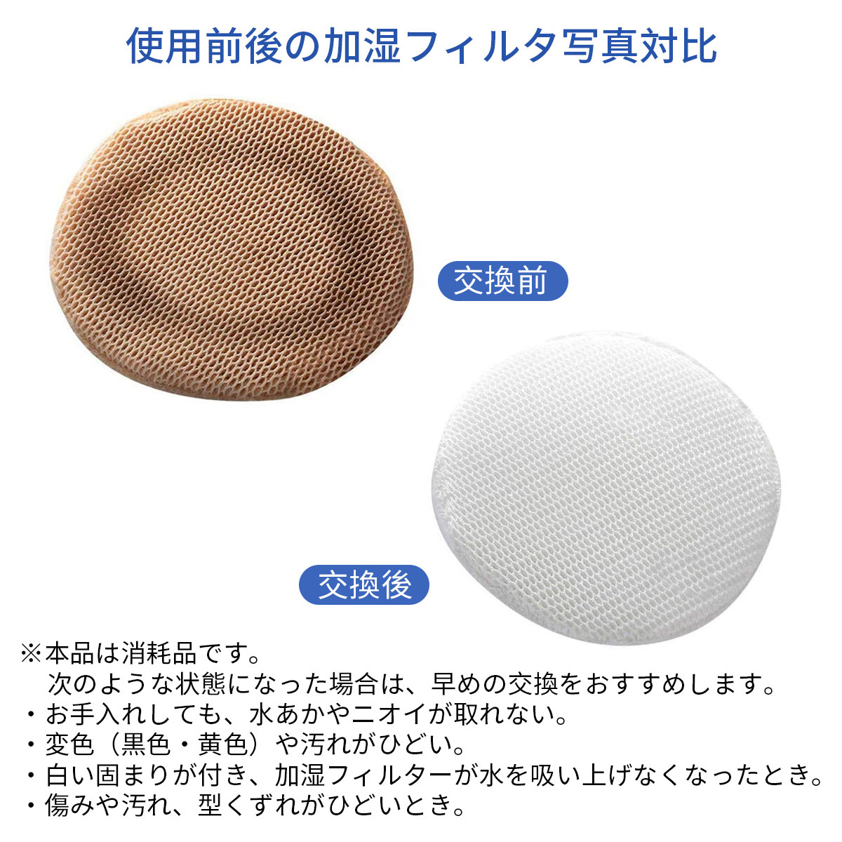 商品の説明: パナソニック加湿空気清浄機交換用 加湿フィルター、加湿機能 抗菌 防カビ「互換品」 フィルター対応品番: FE-ZGV08(1枚入り)、材質: ポリエステル(フュージョン静置式) フィルター枠やフィルター押さえは付いていません。 交換の目安: 約3年。水質、使用環境によっては交換時期が早くなることがあります。 加湿フィルター抗菌、防カビ方法: フィルターに抗菌・防カビ剤を含浸、トレイ内の雑菌・カビの繁殖を抑えます。 本品は消耗品です。汚れが目立ち効果が落ちているようでしたら、速やかに交換することをおすすめいたします。 加湿フィルター fe-zgv08 対応機種一覧: F-VE40XJ/F-VXC50XJ/F-VXH70B2/F-VXH50B2/F-VX40H1/F-VX40H2/F-VX70E8/F-VXG70-K/F-VXH70-K/F-VX50E8/F-VXG50-P/F-VXH50-P/F-VXGB70/F-VXGB50/F-VXG70-W/F-VXM55-K/F-VXH70-W/F-VXG50-W/F-VXH50-W/F-VXP55-K/F-VXJ50-W/F-VXR55-K/F-VC55XM-K/F-VC55XK/F-VXS55-K/F-VXK55-T/F-VC55XP-K/F-VXL55-T/F-VC50XJ-W/F-VC55XR-K/F-VXK55-W/F-VC55XS-K/F-VXL55-W/F-VXM55-W/F-VC55XL-T/F-VXP55-W/F-VC55XL-W/F-VC55XM-W/F-VXR55-W/F-VXS55-W/F-VX40A1/F-VC55XP-W/F-VC55XR-W/F-VXJ50-CK/F-VC55XS-W/F-VXH50-CK/F-VXG80-S/F-VXH80-S/ ※必ず対応本体品番をお確かめの上、ご購入ください。品番末尾の「-K」や「-W」などは色柄コードです。 フィルターにミネラル分が付着すると、雑菌やカビが繁殖し悪臭が発生したり、加湿量の低下や送風音が大きくなる原因になります。加湿機用洗剤で定期的なお手入れをお願いします。 ※本品は消耗品です。加湿フィルター次のような状態になった場合は、早めの交換をおすすめします。 ・お手入れしても、水あかやニオイが取れない。 ・変色(黒色・黄色)や汚れがひどい。 ・白い固まりが付き、加湿フィルターが水を吸い上げなくなったとき。 ・傷みや汚れ、型くずれがひどいとき。 【注意事項】 ・当店でご購入された商品は、原則として、「個人輸入」としての取り扱いになり、ネバダからお客様のもとへ直送されます。 ・一部商品は国内の提携先倉庫から配送されます。 ・商品お届けまでに、海外からの配送は1週間程度、国内配送の場合は1〜2日程度かかります。 ・個人輸入される商品は、すべてご注文者自身の「個人使用・個人消費」が前提となりますので、ご注文された商品を第三者へ譲渡・転売することは法律で禁止されております。 ・関税・消費税が課税される場合があります。詳細はこちらをご確認下さい。 ・国内配送の商品は国内でのお買い物と同じく消費税が発生いたします。関税はかかりません。