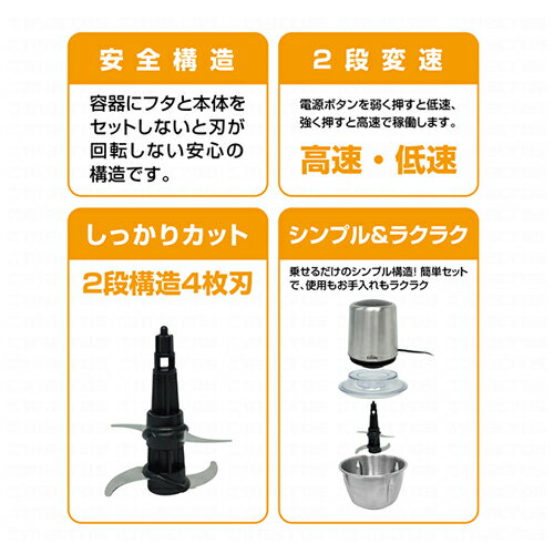 マクロス ステンレスフードプロセッサー 容量1L MEK-36 商 品 説 明 スマート&スタイリッシュ 料理の下ごしらえに、一台あると便利なフードプロセッサー 商 品 仕 様 サイズ 約φ16×H24.5cm コード : 約110cm 重量 約1kg 材質 ステンレス AS POM PC ABS シリコン 電源 交流式 容量 1L 保 証 に つ い て ■メーカー保証なし 記載の注意事項を除く初期不良品の場合のみ、商品到着から1週間以内のみ対応いたします。 ご到着後はお早めに商品状態をご確認ください。 注 意 事 項 ●こちらの商品は、未使用新品です。●モニター環境により、実際のカラーと異なって見える場合がございます。 【ゆうパック優先配送の注意事項】(1) 締め切り時刻迄に決済が完了した注文が当日発送となります。(2) 店舗休業日のご注文は翌営業日の発送となります。(3) 商品名に「優先配送との同梱不可」の記載がある商品は優先配送商品との同梱はできません。(4) 商品名に「優先配送との同梱不可」の記載がされた商品が同梱されていた場合は、当日又は翌日発送されませんのでご注意下さい。(5) 同梱商品の中に「優先配送」の商品が1つ以上存在する場合は、配送方法に「定形外郵便」等、「優先配送」以外を選択した商品も「優先配送」で発送されます。※商品の発送は「ゆうパック」又は「ゆうパック優先配送」を選択できます。 ★送付先が北海道、沖縄、離島の場合は注文金額により以下の送料が必要です。・北海道の場合、注文金額が3,980円未満は880円、3,980円以上は送料無料です。・沖縄、離島の場合、注文金額が9,800円未満は880円、9,800円以上は送料無料です。