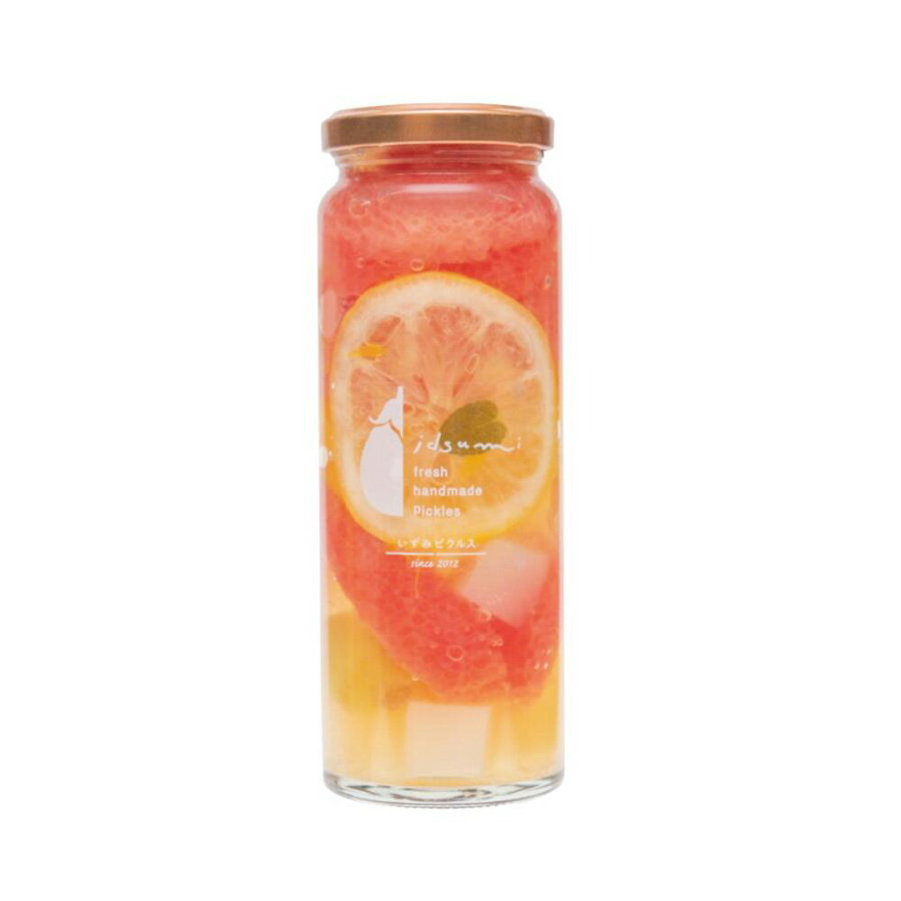 「いずみピクルス」は、採れたて野菜や果実のみずみずしい輝きを、そのままぎゅっと閉じ込めました。【フルーツが爽やかなお酢と調和したピクルス】 色鮮やかなピクルスですので、贈り物にも喜ばれます。フルーツをよりフレッシュに美味しく食べられる、珍しいフルーツピクルスをご賞味下さい。 ■配送不可地域:北海道・沖縄・離島 ■原材料名:フルーツピクルス人気3本セット ・フルーツピクルス(グレープフルーツとぶどう) グレープフルーツ(南アフリカ)、ぶどう(アメリカ合衆国)、ナタデココ、レモン(アメリカ合衆国)、ミント、漬け原材料( りんご酢(りんごを含む)、砂糖、はちみつ、バルサミコ酢) ・フルーツピクルスシトラスmix(シトラス3種とパイナップルとぶどう) オレンジ(オーストラリア)、グレープフルーツ(南アフリカ)、パイナップル(フィリピン)、ぶどう(アメリカ合衆国)、レモン、ナタデココ、ミント、漬け原材料(りんご酢(りんごを含む)、砂糖、はちみつ、バルサミコ酢) ・フルーツピクルス(パイナップルとぶどう) パイナップル(フィリピン)、ぶどう(アメリカ合衆国)、ナタデココ、ミント、漬け原材料(りんご酢(りんごを含む)、砂糖、はちみつ、ライム果汁、バルサミコ酢) ■アレルゲン表示:(義務7品目)卵 (推奨21品目)りんご ■賞味期限:1年 ■規格:フルーツピクルス(グレープフルーツとぶどう)210g、フルーツピクルスシトラスmix(シトラス3種とパイナップルとぶどう)210g、フルーツピクルス(パイナップルとぶどう)210g ■サイズ(mm):170×196×58 ■ギフト対応 ・ラッピング対応:対応NG ・のし対応:対応NG ・表書き:対応NG ・名入れ:対応NG ■発送の目安:ご注文後、7日営業日以内の発送となります。 ■備考:直射日光の当たらない、涼しいところで保管してください