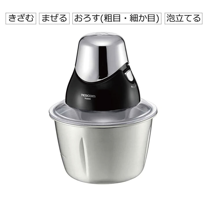 ● 軽くて丈夫なステンレスボトル ●<きざむ><まぜる>ができるみじん切りカッターでラクに下ごしらえ ●<泡立て>ができるバター&ホイップで自家製バターづくり ●液もれしにくい構造 ●液もれしにくい構造 ●簡単操作&安全設計 ●レシピブック付き 【製品仕様】 ●定格時間:(連続使用可能時間)1分(1分動作後は15分休止) ●容器容量:300g(液体含む)詳細は楽天市場ヘルプページ「領収書について」をご確認ください。 楽天市場ヘルプページ:https://ichiba.faq.rakuten.net/detail/000006734