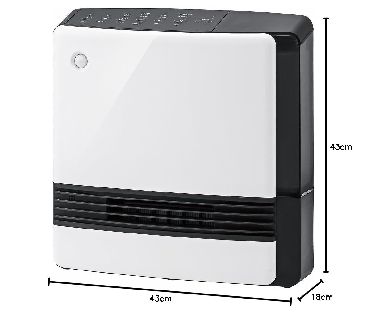 · 【重要して、正規代理販売店以外のご購入はメーカー· サイズ:幅43×奥行18×高さ43cm· 消費電力:暖房(強/1200W、弱/600W)、加湿(35W)· タンク容量:2.5L· 最大加湿量:700mL/h(暖房/強運転時)うるおい加湿とパワフル暖房のWパワーで快適空間を演出する「モイストエアヒート」。1200Wのパワフル暖房に加え700mL/hの加湿により、室温が下がりづらく、リビングなどの広い部屋でも効率よく暖めることが可能で、乾燥知らずの快適空間を実現します。温度湿度コントロール機能を搭載し、好みにあわせて理想的な環境を簡単に設定することができます。さらにLEDディスプレイ搭載で現在温度湿度やタイマー設定なども一目でわかります。またユニバーサルデザインを採用し立ったまま操作がしやすい角度に設計された操作部や、お手入れのしやすいトレイの設計など、使い勝手の良さを追求しました。· 【重要して、正規代理販売店以外のご購入はメーカー· サイズ:幅43×奥行18×高さ43cm· 消費電力:暖房(強/1200W、弱/600W)、加湿(35W)· タンク容量:2.5L· 最大加湿量:700mL/h(暖房/強運転時)うるおい加湿とパワフル暖房のWパワーで快適空間を演出する「モイストエアヒート」。1200Wのパワフル暖房に加え700mL/hの加湿により、室温が下がりづらく、リビングなどの広い部屋でも効率よく暖めることが可能で、乾燥知らずの快適空間を実現します。温度湿度コントロール機能を搭載し、好みにあわせて理想的な環境を簡単に設定することができます。さらにLEDディスプレイ搭載で現在温度湿度やタイマー設定なども一目でわかります。またユニバーサルデザインを採用し立ったまま操作がしやすい角度に設計された操作部や、お手入れのしやすいトレイの設計など、使い勝手の良さを追求しました。