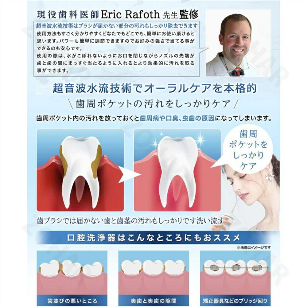 商品情報メーカー希望小売価格メーカー希望小売価格はメーカーサイトに基づいて掲載していますメーカー希望小売価格はメーカーサイトに基づいて掲載していますメーカー希望小売価格はメーカーサイトに基づいて掲載していますメーカー希望小売価格はメーカーサイトに基づいて掲載しています【正規品】最新 歯科先生監修 口腔洗浄器 コードレス口腔洗浄機 コンパクト ジェットウォッシャー 風呂 口腔ケア 口腔洗浄機 300ml大容量タンク 歯周病予防 口内洗浄器 歯間洗浄機 防水 USB充電式 矯正 日本語説明書 デントレックス 【2年保証】 口内洗浄器 タンクレス歯間 防水 充電 口臭予防 トゥースジェット 2024年最新モデルコードレス口腔洗浄機ジェットで効果的に口腔ケアができるだけでなく、大容量の300mlタンクで長時間使用可能です。この口腔洗浄器は、歯周病予防や歯間洗浄に最適です。毎日の歯磨きの補完として、歯の隅々までしっかり洗浄しましょう。また、USB充電式なので、外出先でも手軽に充電できます。防水設計なので、お風呂でもご使用いただけます。日本語説明書も付属しているので、使い方も簡単です。口内の清潔さを保ち、口腔ケアの充実した毎日を送りましょう。※輸入品でございますので、日本語説明書ご希望の方、店舗にお問い合わせ頂ければ発送いたします。※歯を傷つける恐れがあるので、使用方法を守ってご使用ください。【口腔洗浄&ノズル5種付き】セットには歯科矯正用ノズル、舌クリーナー、高圧ノズル、歯面用ノズル、歯周ポケット用ノズル、5本ノズルが付属されています。ジェット水流で日常の届きにくい歯周ポケット、歯並びの悪い所、矯正器具の周りなどの汚れをすっきり洗浄でき、虫歯、歯ぐき出血などを予防することもできます。【歯周ポケット洗浄】微細な気泡と水流をミックスしたやわらかい水流だからデリケートな歯周ポケットがダイレクトに狙えますバブル水流モードで歯周ポケットの汚れをすっきり洗浄【歯間洗浄】ブラシの届きにくいすき間に詰まった食べカスをはじき出す、強力ジェット水流!【歯ぐきケア】ぐきを効果的にケアします。【歯周病、口臭や虫歯の予防】様々な口腔ケアのニーズを満たすことができます。お口の中をキレイに保つことで歯周病、口臭や虫歯の予防などに役に立ち、また歯ぐきをすことで歯茎を健康にする効果も期待できます。◆必ずお読み下さい◆●商品写真について商品写真につきまして、出来る限り現物を再現できるよう努力しておりますが、ネット販売の性質上、現物を手にしてのお取引ではないため、お客様の感覚に応じまして認識に差異が生じることは致し方ございません。光の加減や、色合い、PC環境等により多少の誤差が生じる可能性がございますことをご了承くださいませ。実物を100%再現することは不可能でございますので、その点を前提としたうえでのお取引であることをご了承くださいませ。つきましては、常識の範囲に照らして実物商品と明らかに違う商品と断定できる場合以外は、厳重に返品等のお申し出をお断りさせていただきますのでご了承くださいませ。※こちらの商品の保証はメーカー保証ではなく店舗独自の保証です。保証期間内、お客様の故意または過失以外で商品の品質不良が発生した際、弊店に連絡していただければ取替対応致します。※ 初期不良、商品の誤送等がございましたら、必ず当店までご連絡ください。(突然の悪い評価でのご連絡はご遠慮下さい)【ご注意】弊社は輸入・販売する商品の正規取扱店です。非正規品の流通が増えておりますのでお買い上げの際は充分にご注意ください。 5